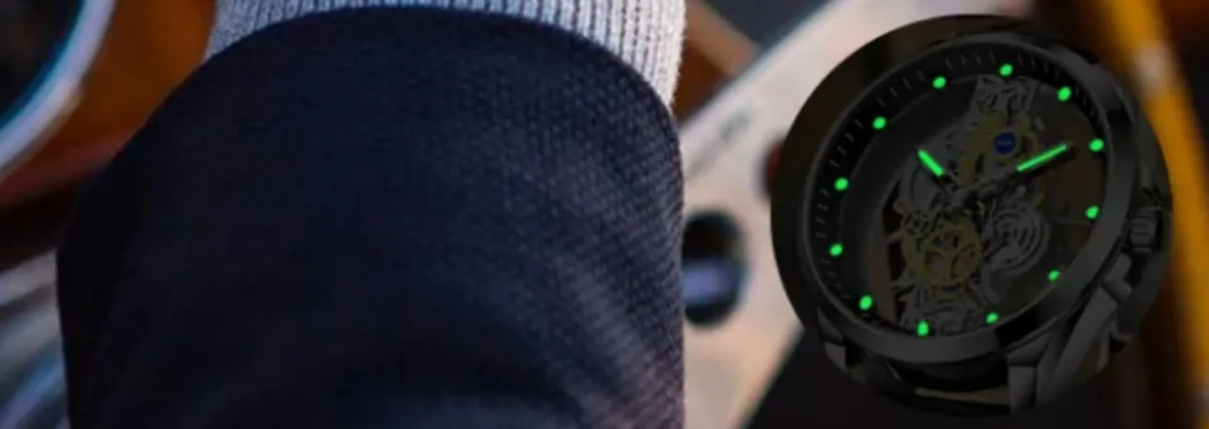 Introducing the quintessential blend of sophistication and mechanical artistry: the Men’s Gold Skeleton Automatic Quartz Watch.